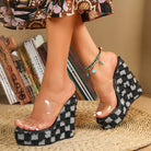 Step boldly into any scene with the Lost In The Cold Wedges Sandals. Crafted from durable PU, PVC, and rubber, these checkered sandals combine edgy style with lasting comfort. Their bold pattern and sturdy materials make them perfect for those who dare to stand out while staying grounded.