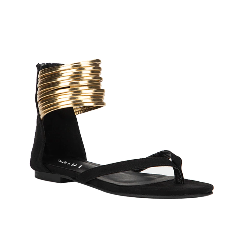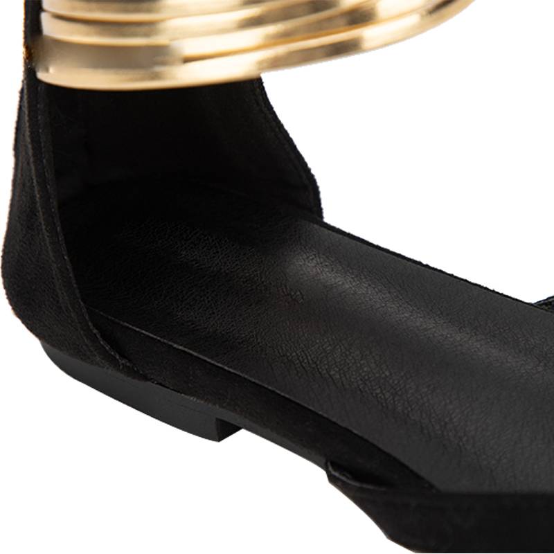 Sandalia plana flocada con tiras en el tobillo y cierre de cremallera en la espalda