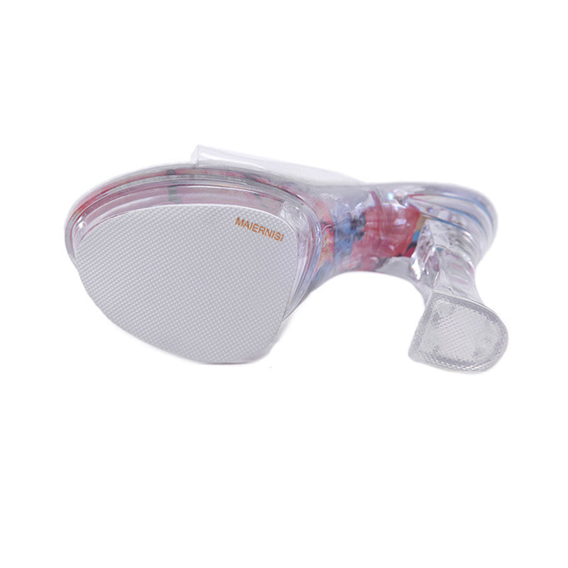 Sandalia de tacón de piel sintética transparente con forma de lago de los cisnes