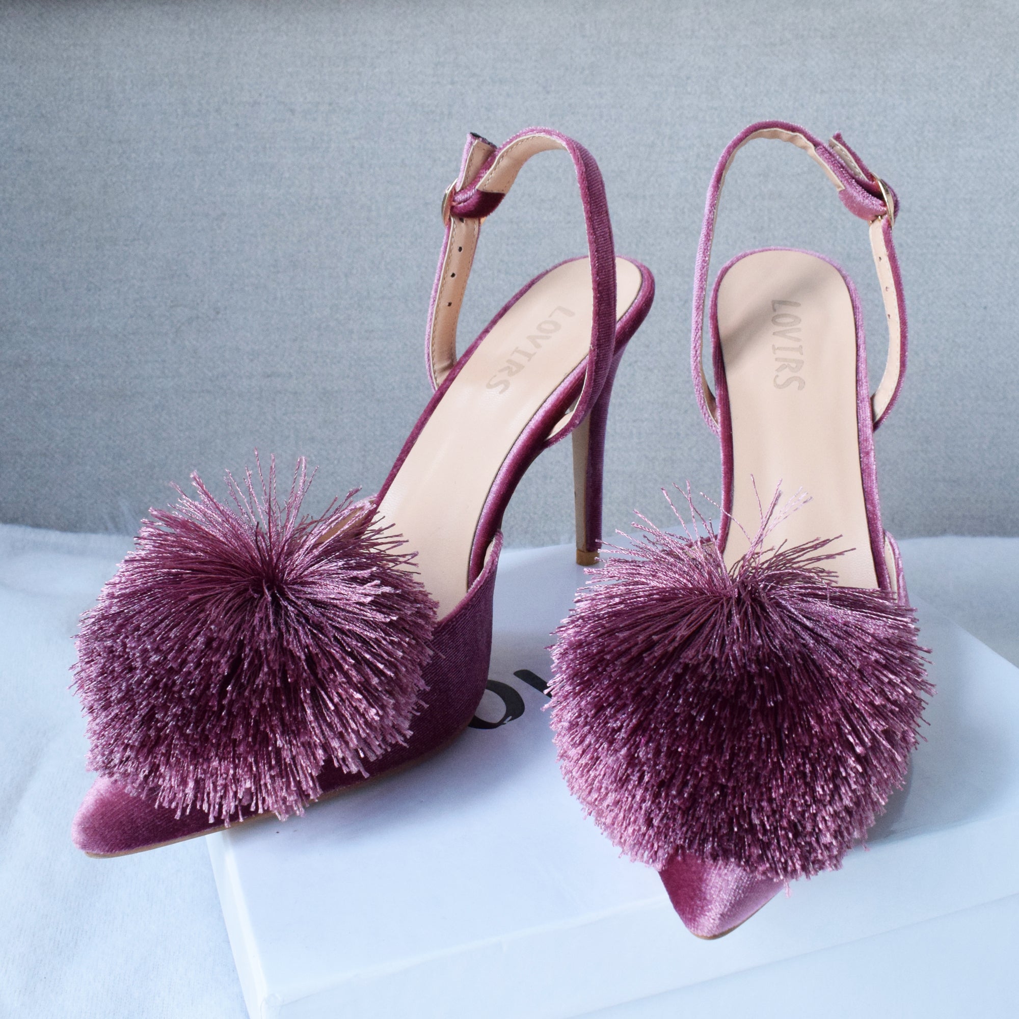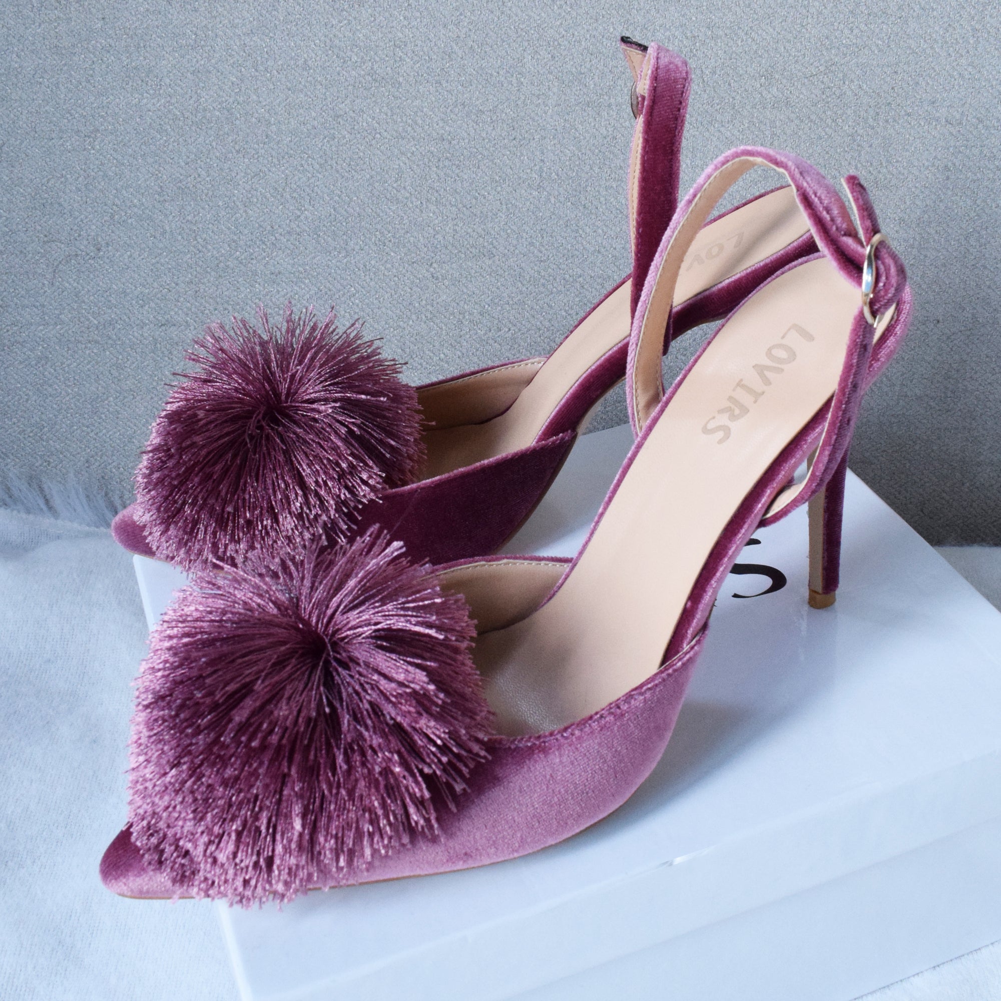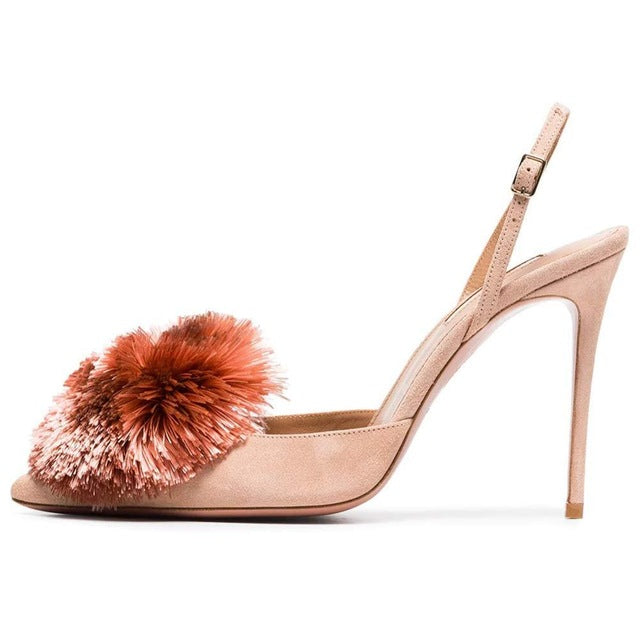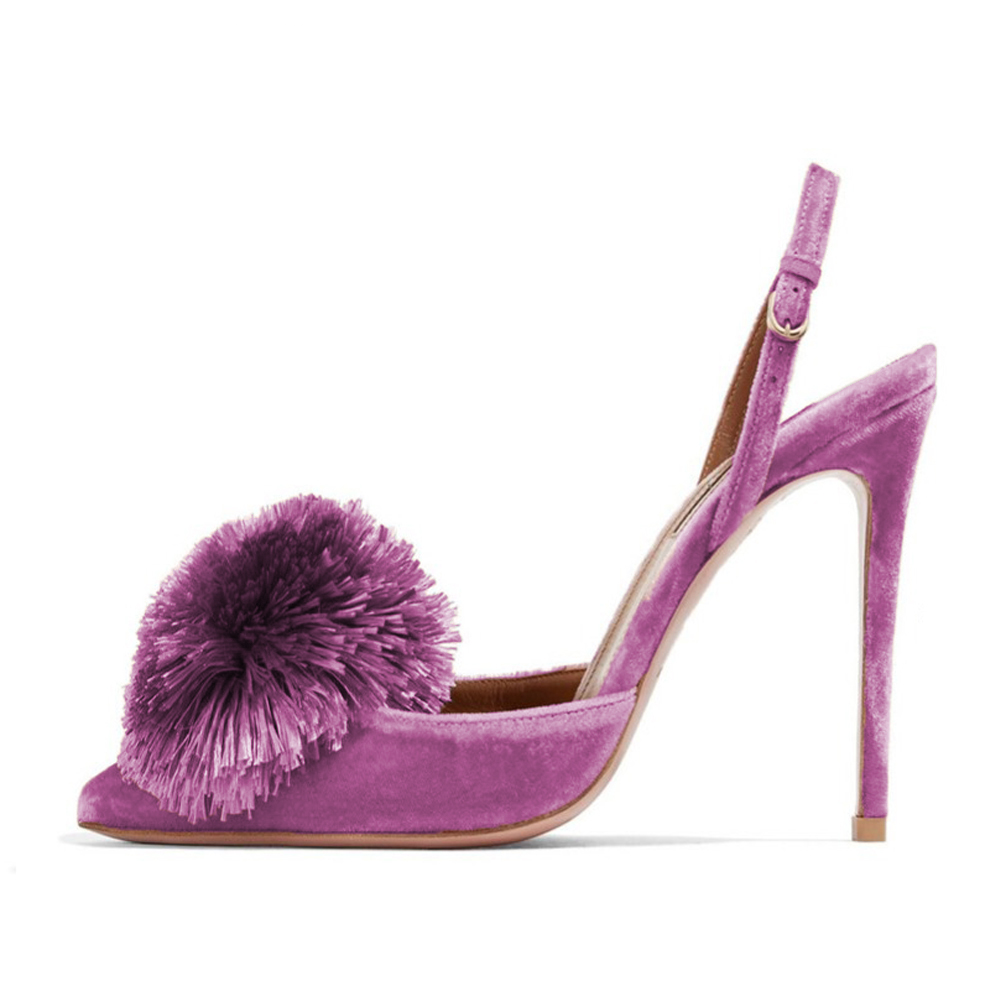 Mules de tacones finos de color liso flocado