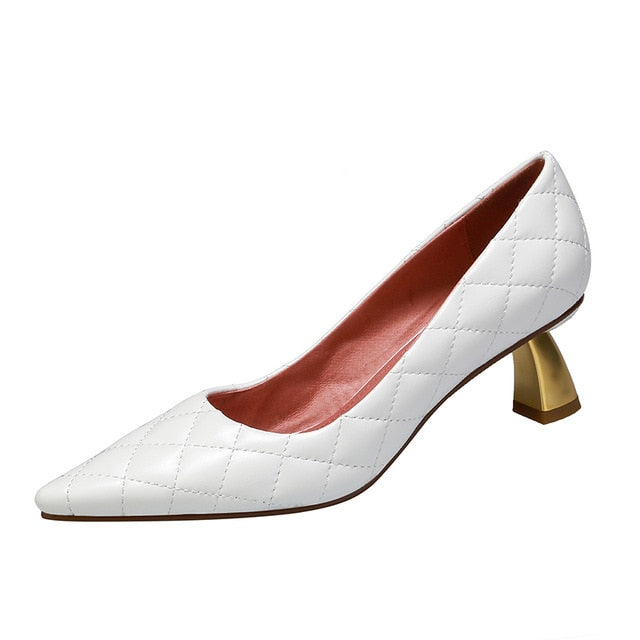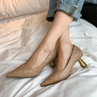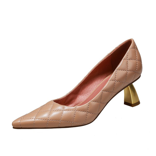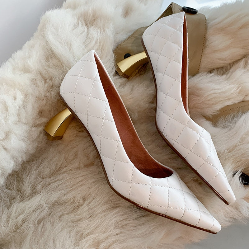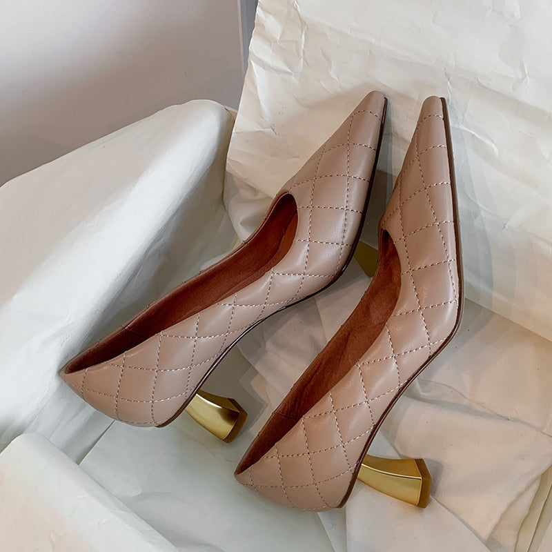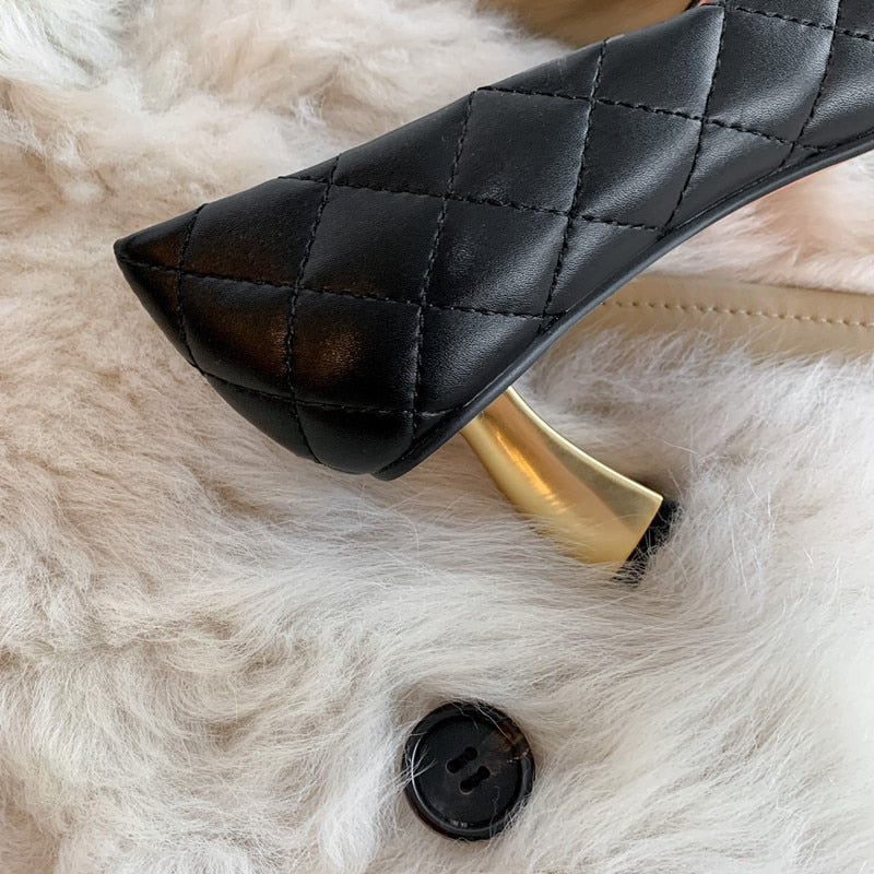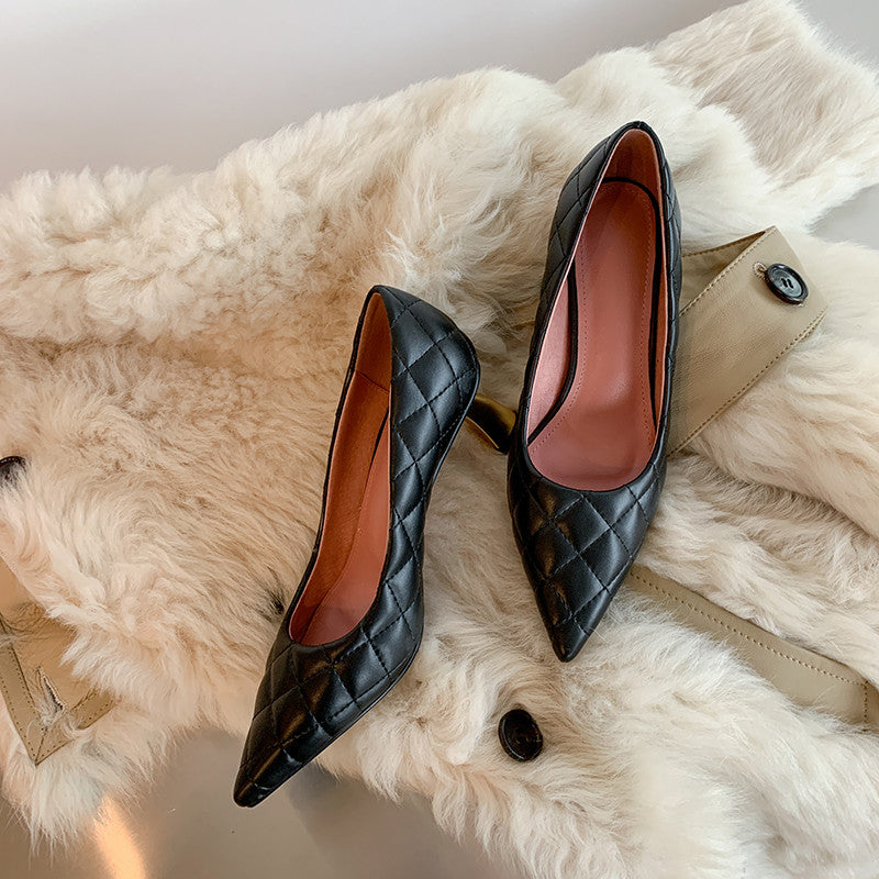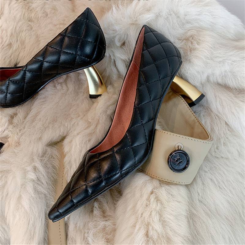 Zapatos de salón de tacón únicos de goma de microfibra de piel de oveja genuina de piel de cerdo con punta puntiaguda
