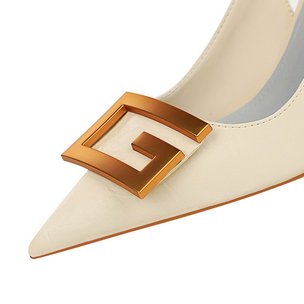Pointed Toe Sling Back Stiletto made from Cotton Fabric, Soft Leather, and Rubber Material