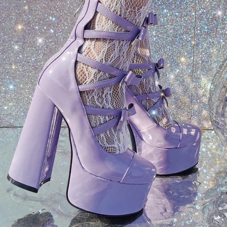 Own the room in the Glitter Drive Pump Shoes—where rebellious edge meets refined charm. The daring open side vamp cuts through convention, while delicate little bows add an unexpected twist of personality. Wrapped in lustrous patent leather that catches every light, these pumps deliver high-impact glamour with a playful edge. For those bold enough to blend sophistication with attitude.