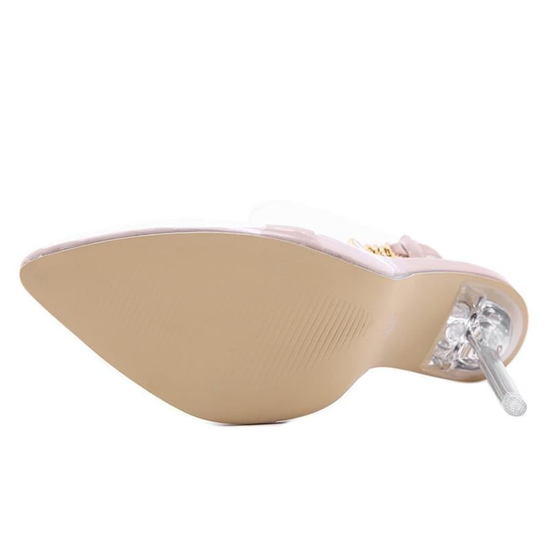 Effortlessly stylish, these stilettos are sure to have any girl feeling confident and beautiful. Designed to be worn with a sassy dress or party outfit, they are a great addition to any collection. With the transparent PVC upper and chain strap, these stilettos are an easy way to add a chic look to any outfit.