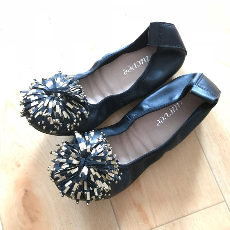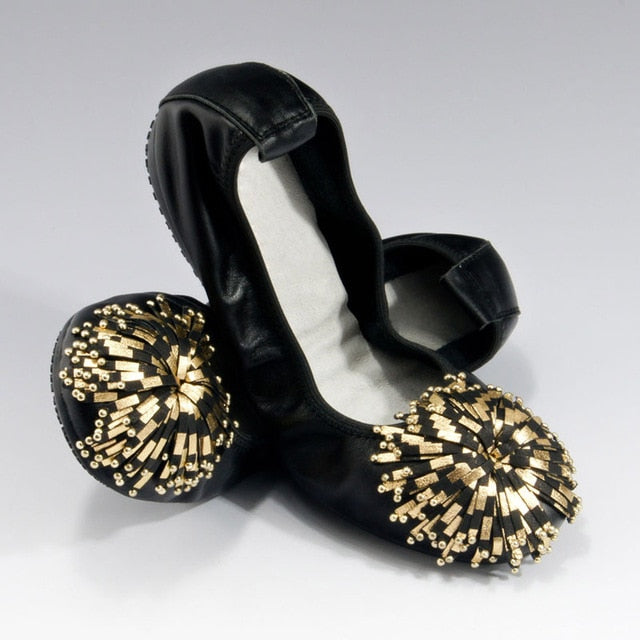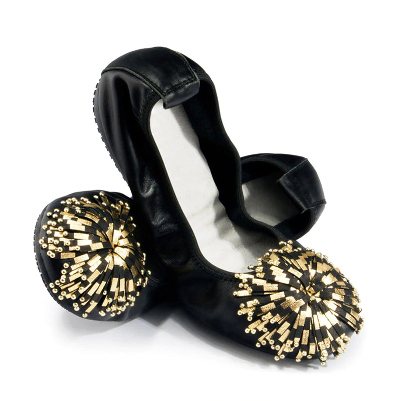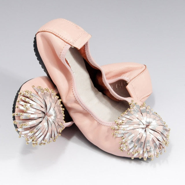 Zapatillas de ballet sin cordones de piel auténtica de vaca
