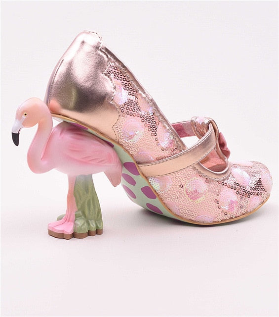 Merceditas de tela con lentejuelas, plantilla de piel de oveja genuina y tacones de flamenco únicos