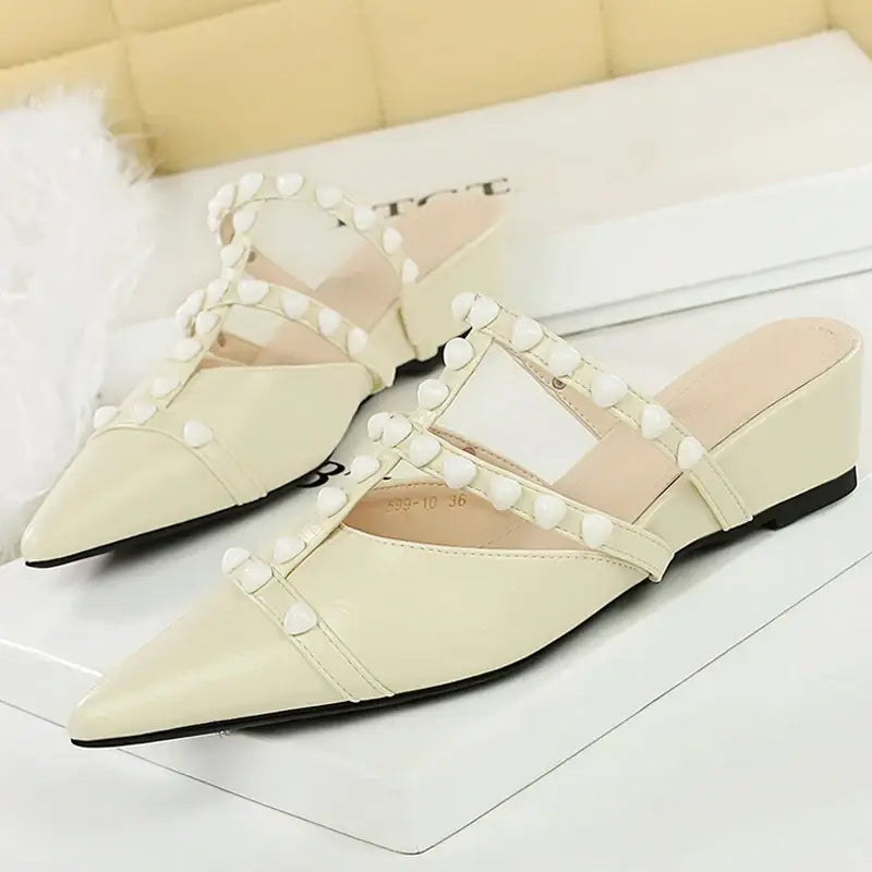 Silent Charm Mules Shoes feature a sharp pointed toe and a sleek PU upper that exudes bold confidence. Their daring design makes a striking statement, perfect for those who want to stand out with edgy sophistication.
