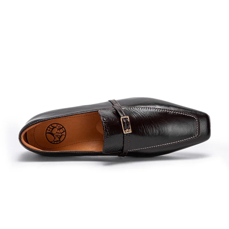 Effortless sophistication meets modern style with these square-toe leather slip-on loafers. Crafted from premium leather, they deliver comfort and durability for everyday wear or professional settings. The slip-on design eliminates laces for quick, convenient dressing, while the distinctive square-toe silhouette adds contemporary flair to any outfit. Perfect for transitioning from office to casual occasions with understated elegance.