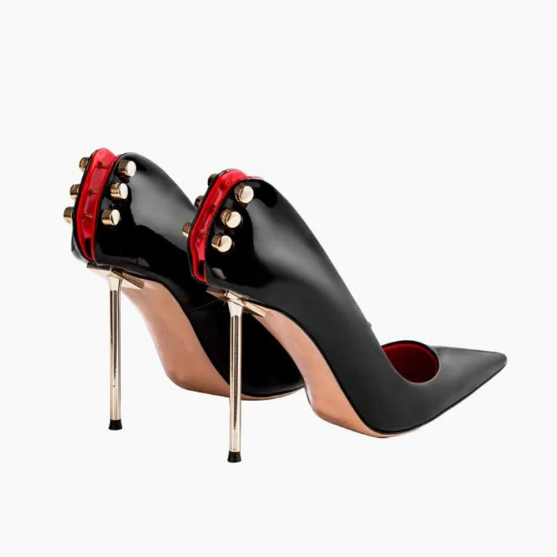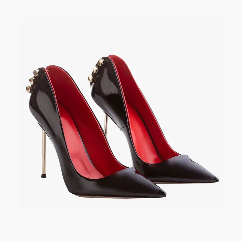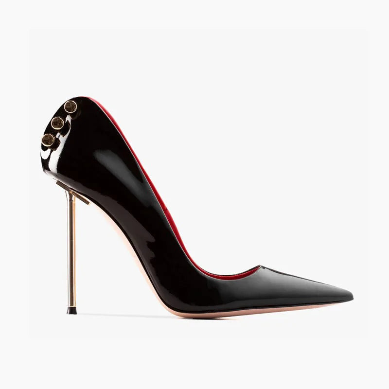Step out boldly with the Velvet Mirage Pumps, featuring a sleek pointed toe that sharpens your silhouette. Crafted from glossy patent leather, these shoes bring a striking edge to any outfit, perfect for making a daring statement. Elevate your style with a confident, polished finish that demands attention wherever you go.