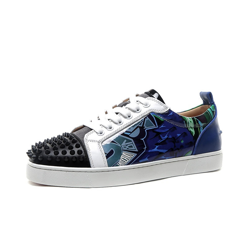 Get ready to take on your day in these trendy, stylish, comfortable women's sneakers. These lace-up sneakers are made of genuine leather and PU material. The rivets are decorated with geometric patterns. The shoes are a must-have for your wardrobe.