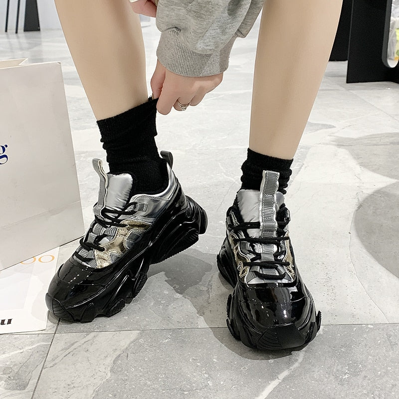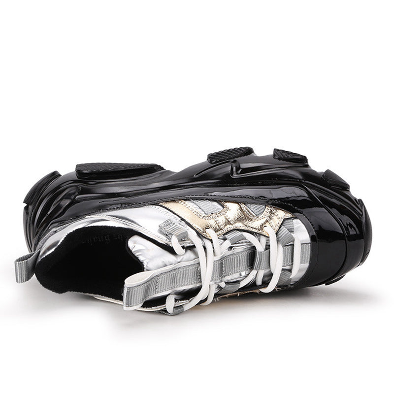 <transcy>Zapatilla deportiva gruesa con estilo deportivo de color en contraste de dos tonos para mujer</transcy>