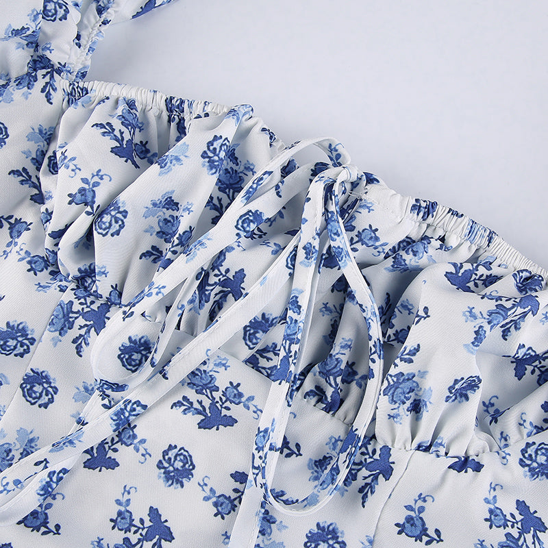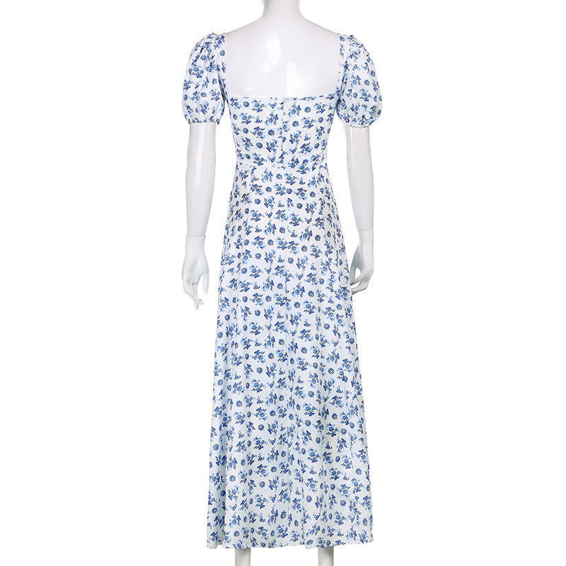 Vestido largo con estampado floral, corte en A y decoración fruncida