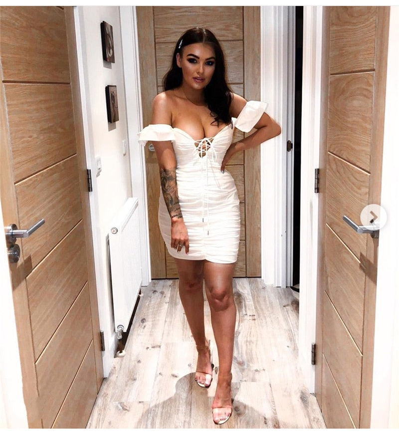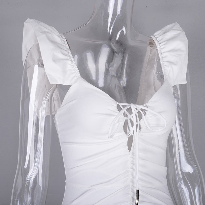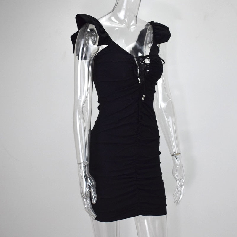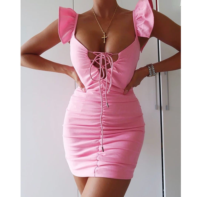 <transcy>Mini vestido de mujer con cuello en V profundo con cordones y manga de mariposa</transcy>