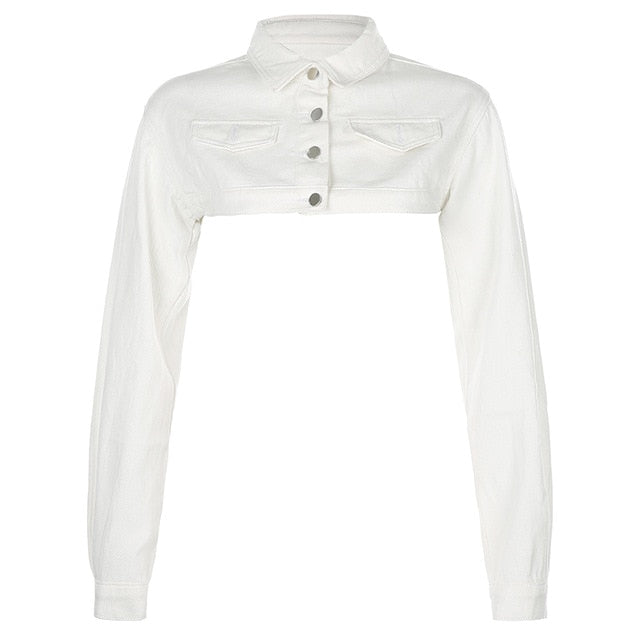 Chaqueta corta de Streetwear con cuello vuelto, cierre de botonadura sencilla y material de algodón
