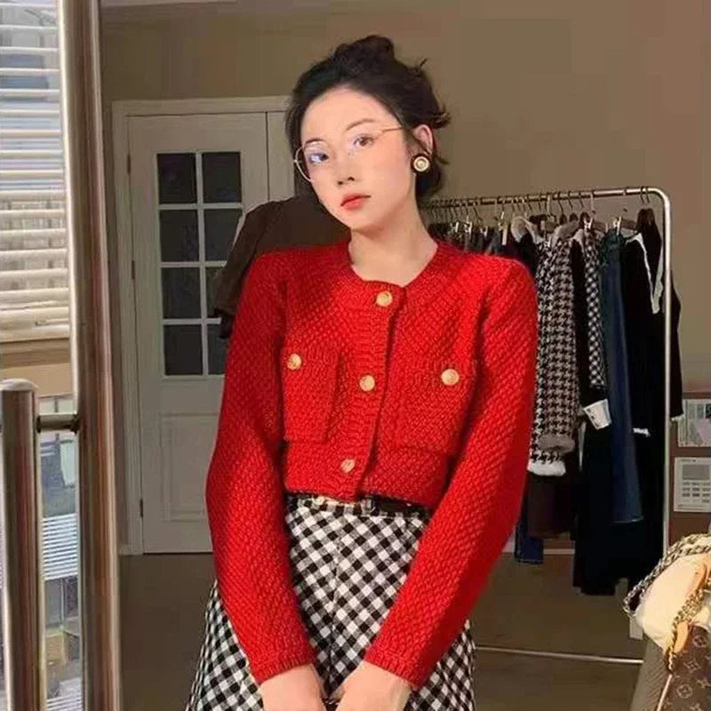 Elevate your wardrobe with this audacious Gold Buttons Knitwear Cardigan—where timeless sophistication meets bold statement-making. Crafted from premium acrylic, this piece delivers luxurious softness without compromise. The striking gold button detailing commands attention, transforming an everyday layer into a conversation starter. Perfect for those unafraid to stand out, this cardigan pairs effortlessly with everything from casual basics to elevated ensembles.