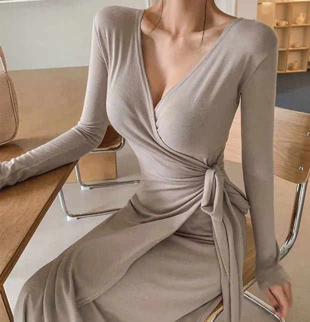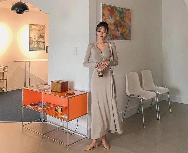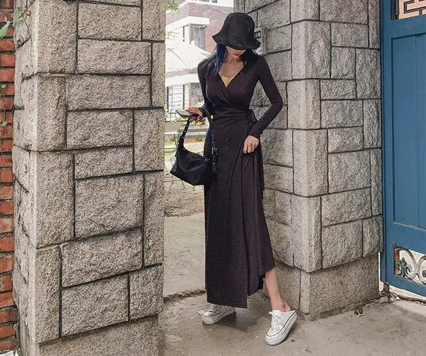 Wrap yourself in the ultimate comfort and style with this maxi dress. Made of a luxurious blend of polyester and cotton, this solid v-neck dress is perfect for any occasion. It's a must-have for those who want to look effortlessly chic!