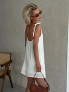 Embrace your boldest self in this Love and After Mini Dress, crafted from a luxurious cotton, polyester, and spandex blend that moves with you. The flattering V-neckline draws attention where it counts, while the stretchy fabric hugs your curves in all the right ways. Perfect for nights when you're ready to turn heads and make a statement. Daring, comfortable, and undeniably chic.