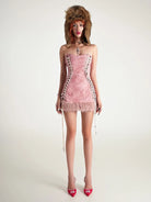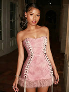 Unleash your boldest self in this Raw Temptress Mini Dress. Crafted from a luxurious polyester and elastane blend, this strapless stunner hugs your curves with confidence-boosting stretch and a sleek finish. The daring neckline frames your shoulders beautifully while the mini length makes a statement. Perfect for nights when you're ready to turn heads and own the room.