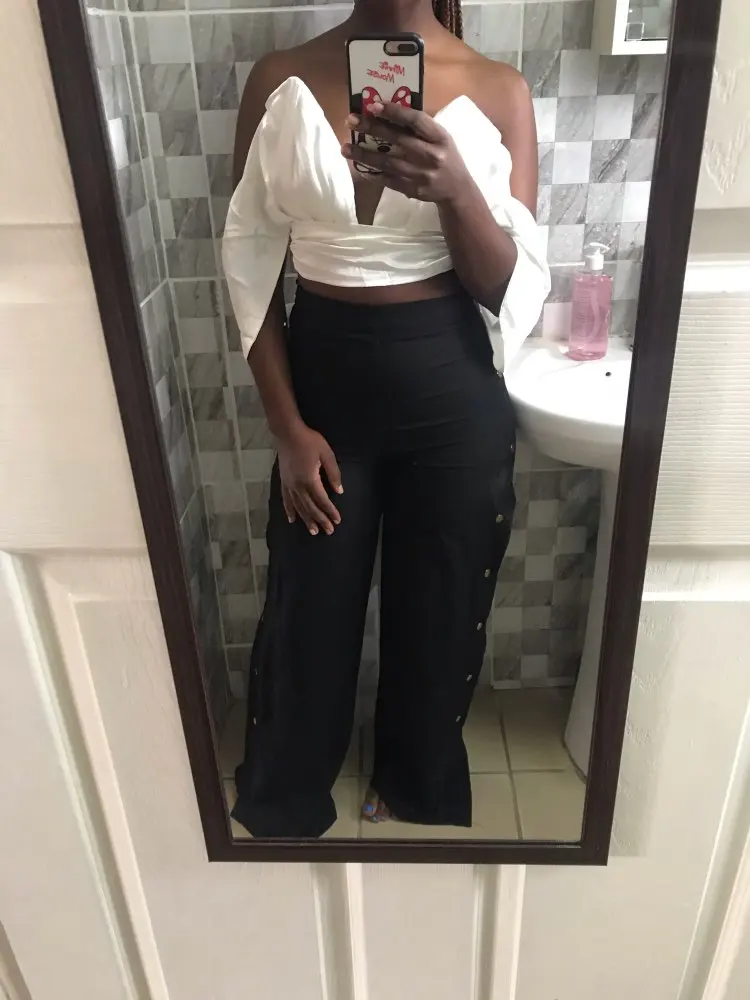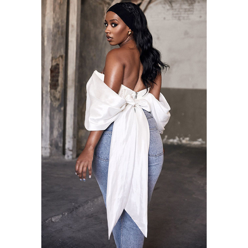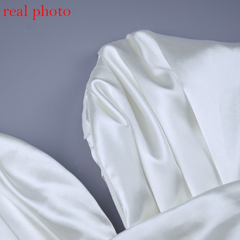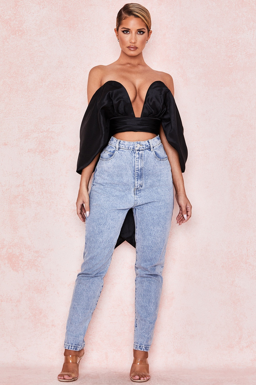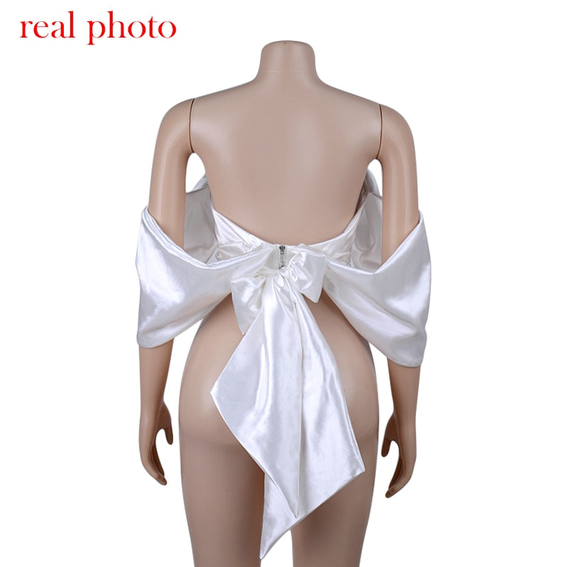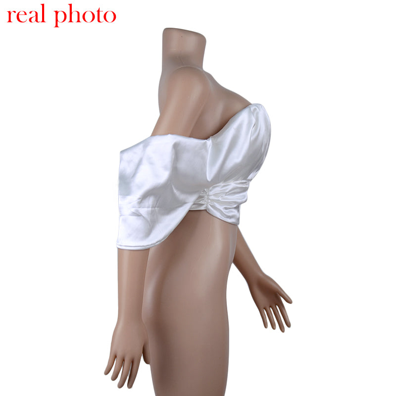 <transcy>Top corto de mujer sin espalda con hombros descubiertos y escote en V profundo de satén</transcy>