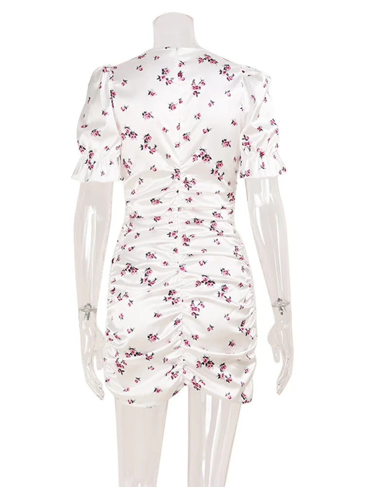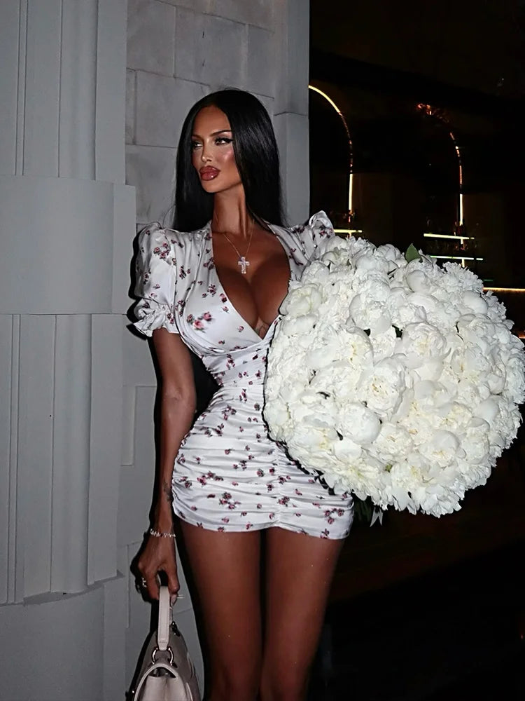 She Learns Distance Mini Dress Embrace bold femininity with this daring mini dress featuring a flattering V-neckline that commands attention. The vibrant floral pattern brings movement and personality to your wardrobe, perfect for those ready to make a statement. Whether you're heading out for an evening adventure or turning heads at a casual gathering, this dress combines edge with elegance.