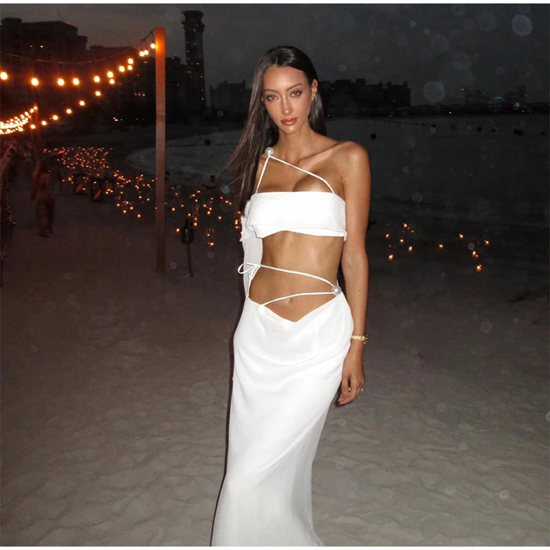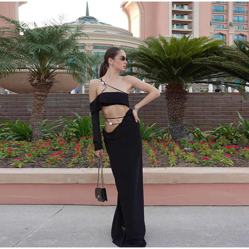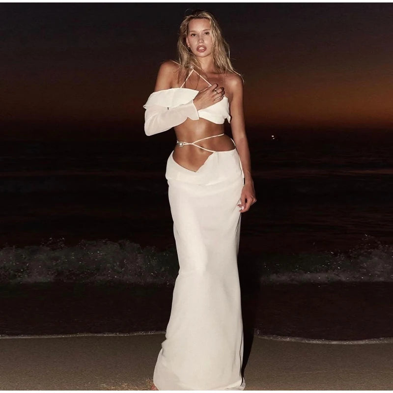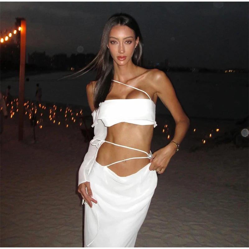 Elevate your style with the Standing On A Bridge Skirt Set, featuring a sleek solid design crafted from smooth polyester. This daring ensemble includes adjustable sashes that add a bold, sculptural touch, perfect for making a confident statement wherever you go.