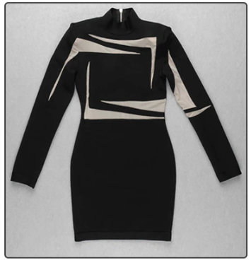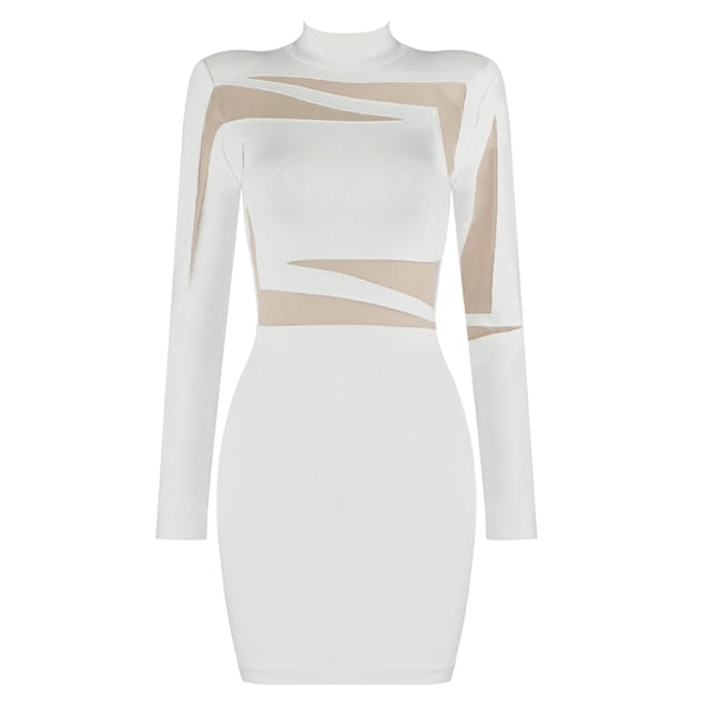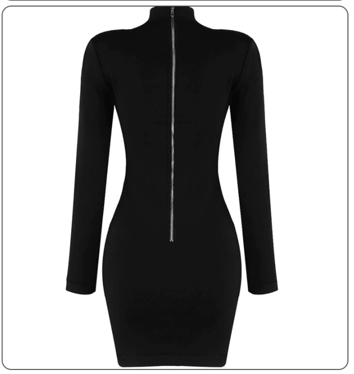 Minivestido de manga larga con cuello alto, Decoración geométrica transparente y cierre de cremallera