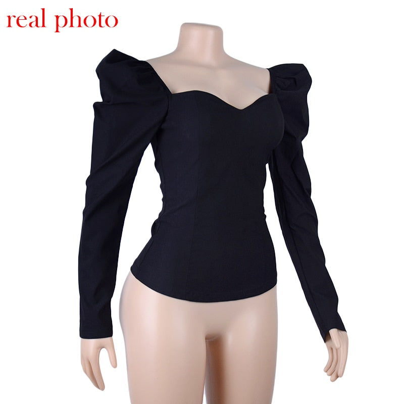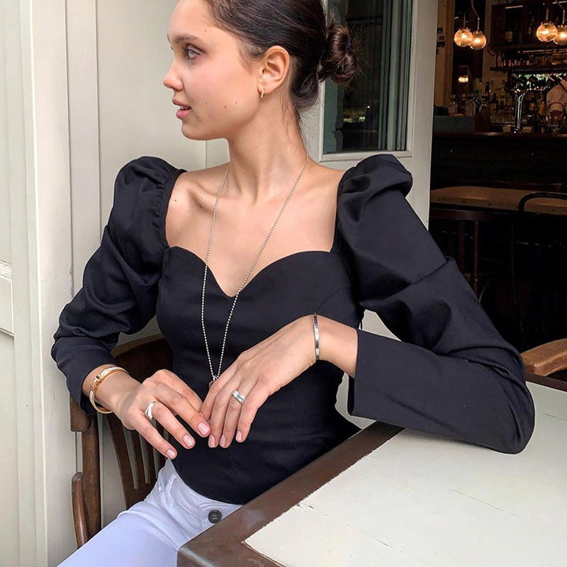 <transcy>Camisa de manga abullonada con cuello de estilo vintage para mujer</transcy>