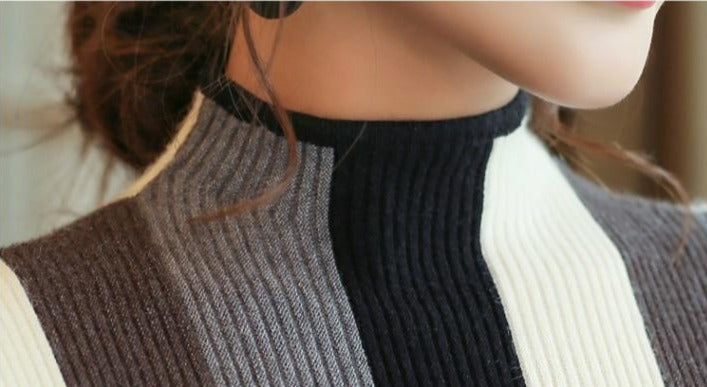 Jersey de cuello alto de manga larga con estampado de rayas y material acrílico de poliéster
