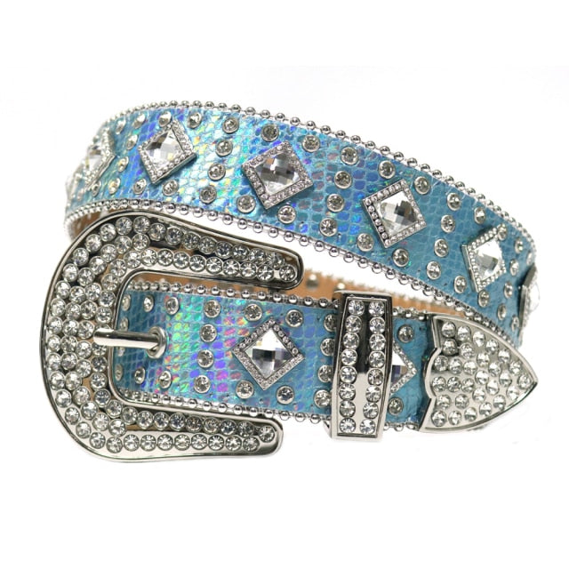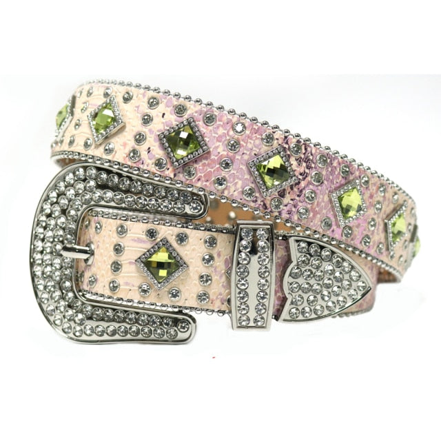 Cinturón de lujo decorado con diamantes de imitación vintage con material de piel sintética