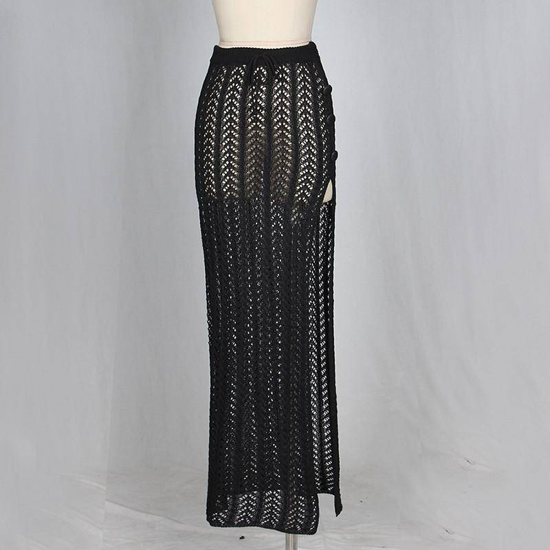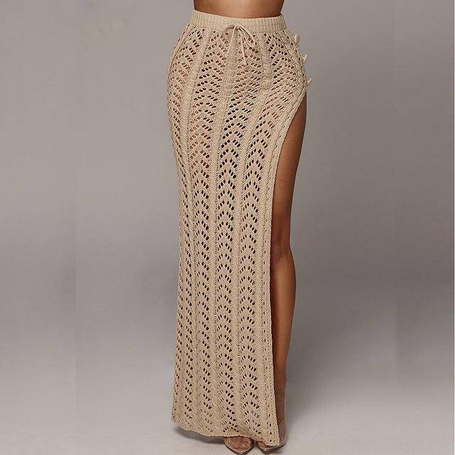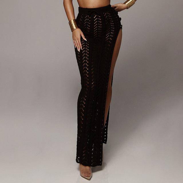 Rompiendo todas las reglas Falda larga de punto con abertura lateral