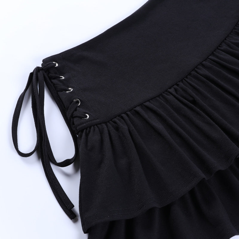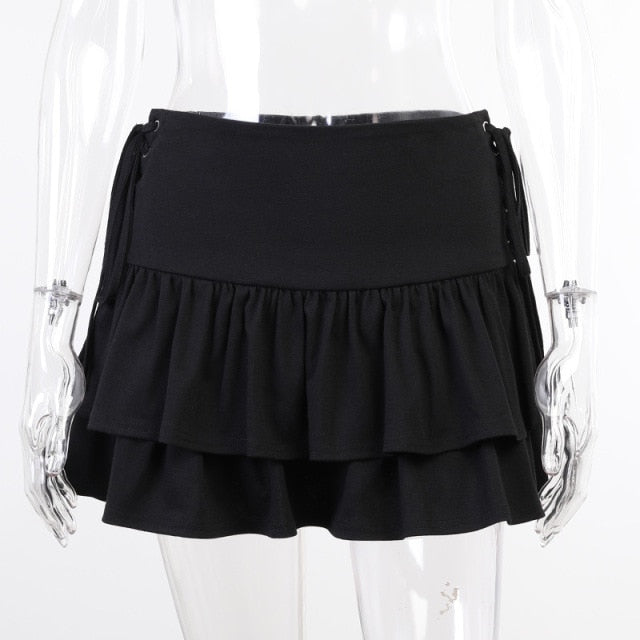 Falda evasé sólida con decoración de cordones en 2 lados hecha de material de algodón y poliéster
