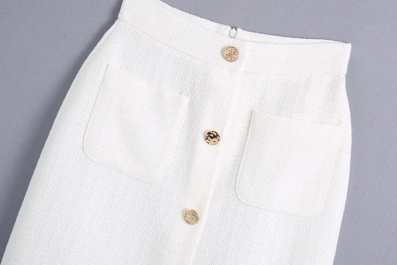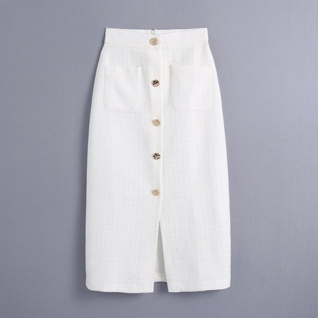 The white color of this midi skirt is perfect to match it with various tops. The simple and minimalist design of this skirt gives it an adorable look that you can wear for work or a date at night with bae. It has 2 pockets in the front so you can put a small thing.