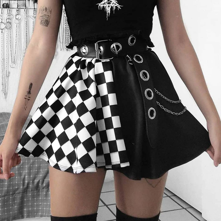 Minifalda estilo gótico de algodón y poliéster con estampado de medio cuadros