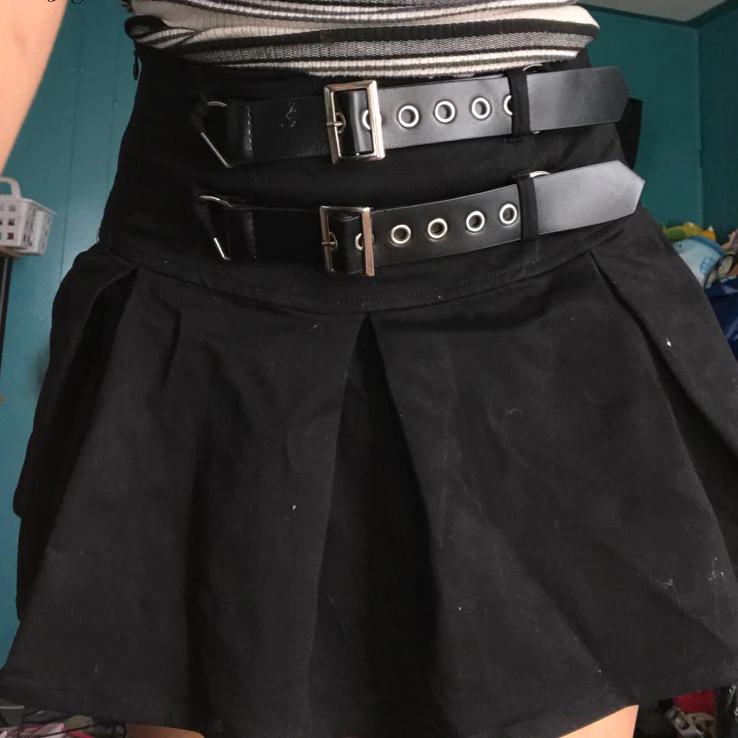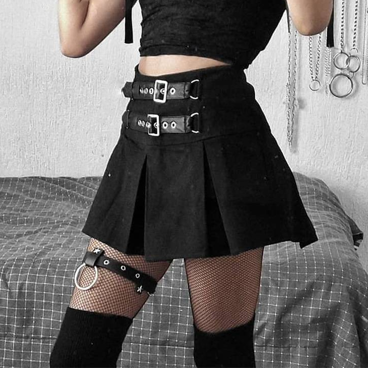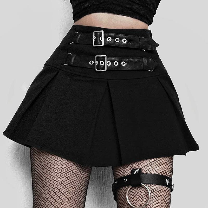 Minifalda evasé de cintura imperio con decoración de cinturón falso