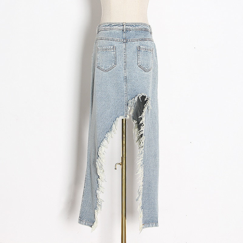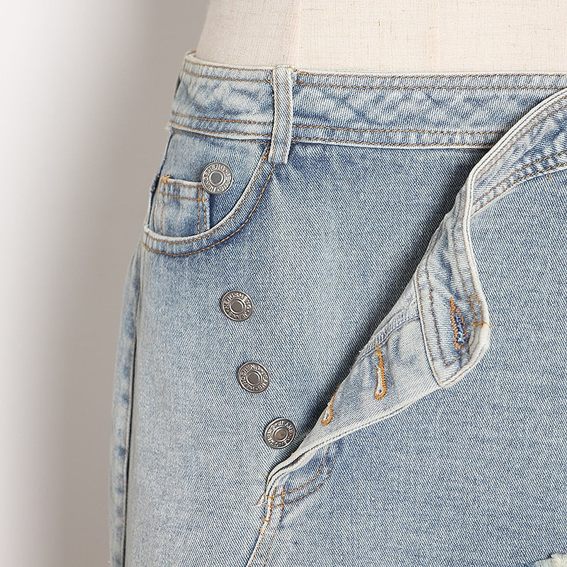 Falda vaquera asimétrica de algodón y licra con cierre de botón en la mosca