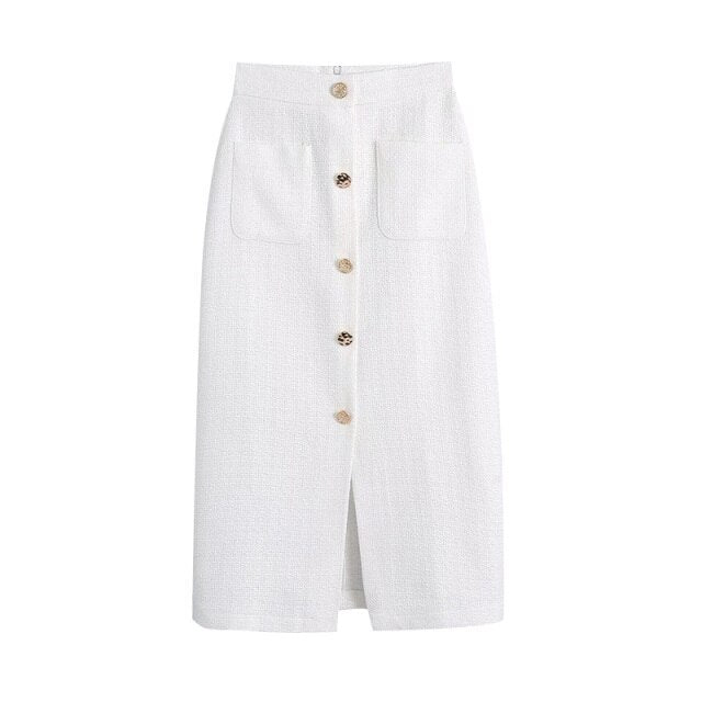 Vestido midi tejido de poliéster sólido con decoración de botones y cierre de cremallera