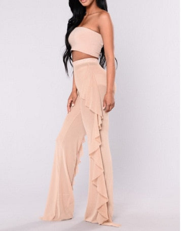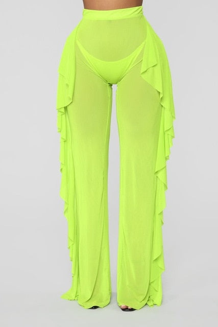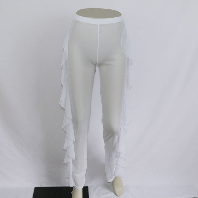 Malla Poliéster Spandex Pantalones transparentes con volantes sueltos estampados sólidos