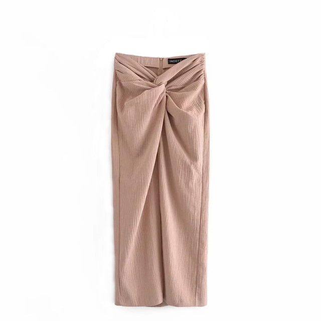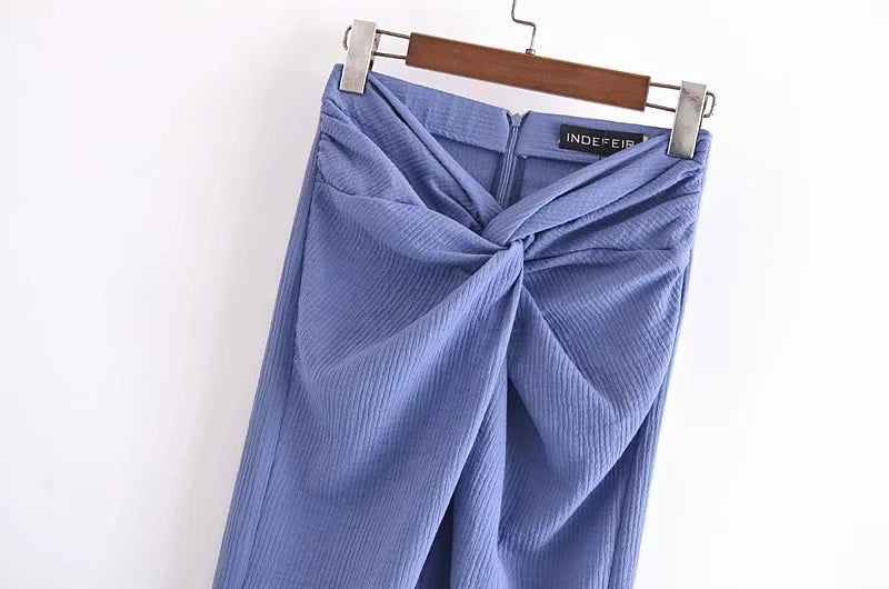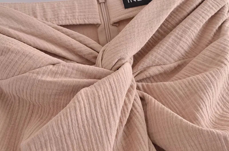 Minifalda decorada con pliegue frontal con cierre de cremallera y material de algodón