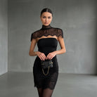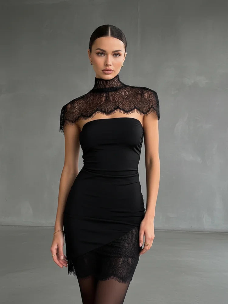 Unleash your edge with this audacious black lace mini dress that commands attention. The detachable collar adds a rebellious twist—wear it bold and statement-making, or strip it back for understated allure. Crafted from delicate lace, this piece balances sophistication with raw attitude, perfect for those who refuse to play it safe. Transform your look in seconds and own every room you enter.