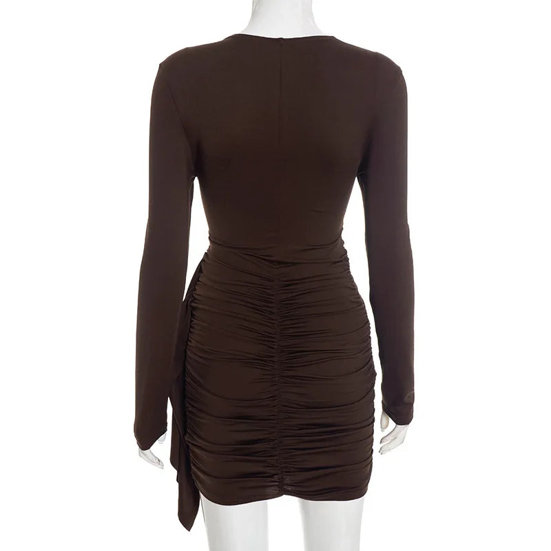 Turn heads in this bold mini dress crafted from a premium polyester and spandex blend. The stretchy fabric hugs your curves while offering all-day comfort and freedom of movement. Perfect for nights out, parties, or whenever you want to make a statement. This daring piece delivers confidence with every wear—sleek, form-fitting, and impossible to ignore.