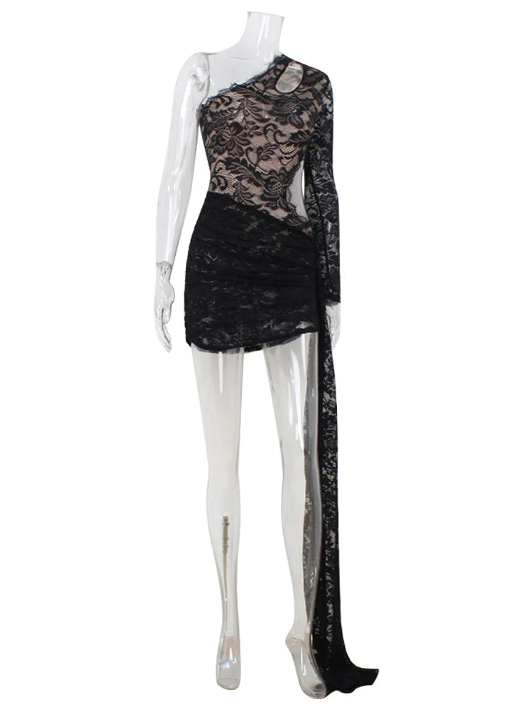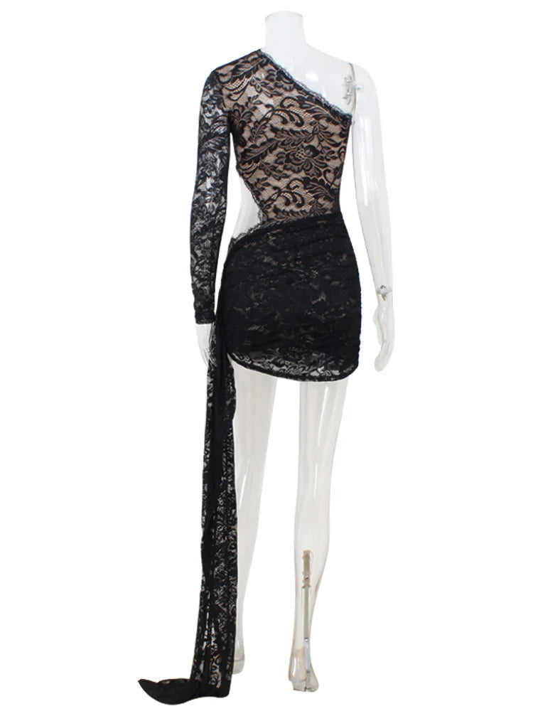 Make a statement with the I'm Choosin' Me Mini Dress—a fearless declaration wrapped in luxurious lace. The striking diagonal collar creates an unexpected silhouette that demands attention, while intricate lace detailing adds texture and allure. This dress is for those who refuse to compromise on style or attitude. Bold, unapologetic, and undeniably captivating.