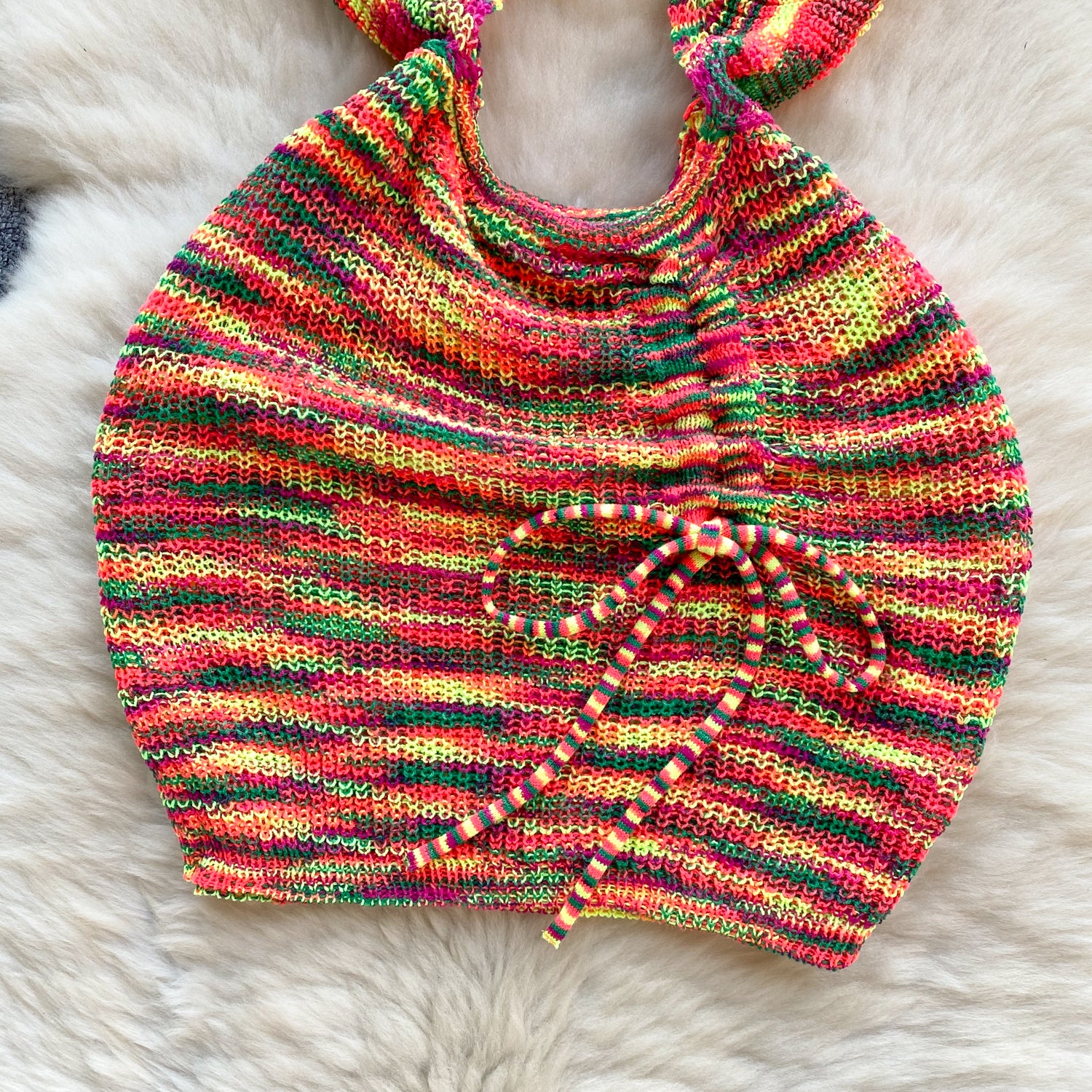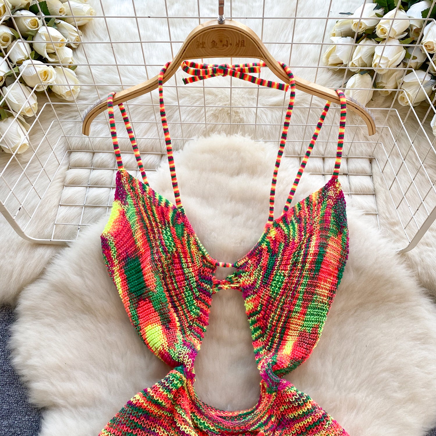 This playful Paper Rainbow Cut Mini Dress features a gorgeous hollow out decoration and falls above the knee for a flattering look. Made with a slight stretch and cozy knitting fabric, it promises both comfort and style. Perfect for adding a pop of color to your wardrobe!