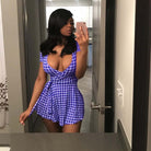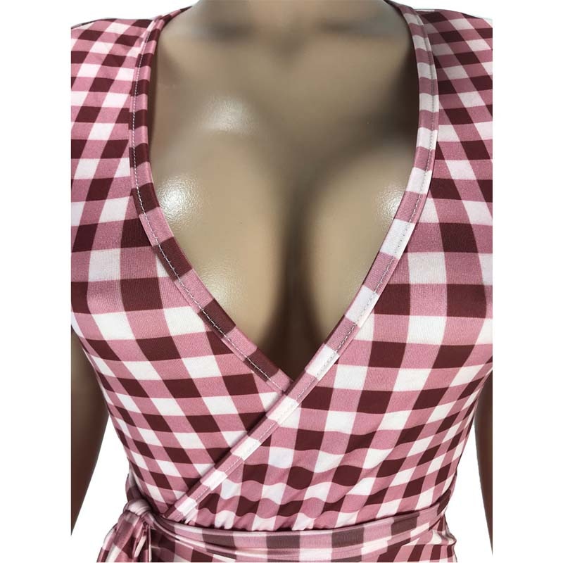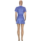 Minivestido de manga corta con estampado de cuadros, cuello en V y decoración de fajas