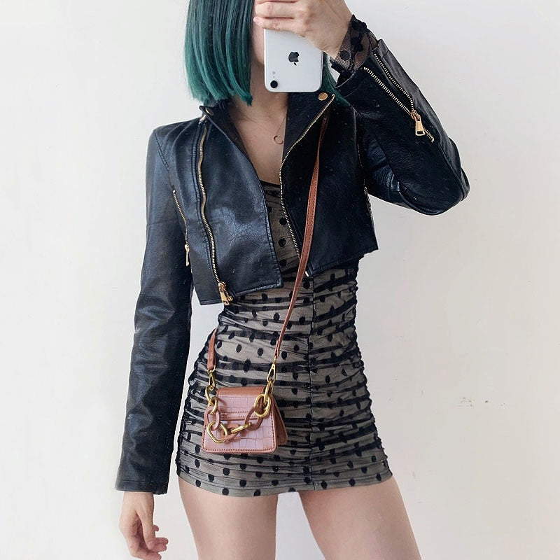 This gorgeous jacket is the perfect item for anyone looking for a stylish new addition to their wardrobe. It features a faux leather exterior with a solid black color, long sleeves, and zippers on the front. It is perfect for pairing with jeans, a cute dress, or leggings.