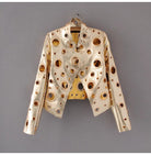 For the fashionista on the go, look no further than this fashionable women's jacket. It's the perfect way to add a fresh outlook to any outfit. The classic mandarin collared design is a timeless classic for your closet. It's made from soft and supple, high-quality PU leather material. Try this jacket for a trendy look that's sure to have you looking and feeling your best.