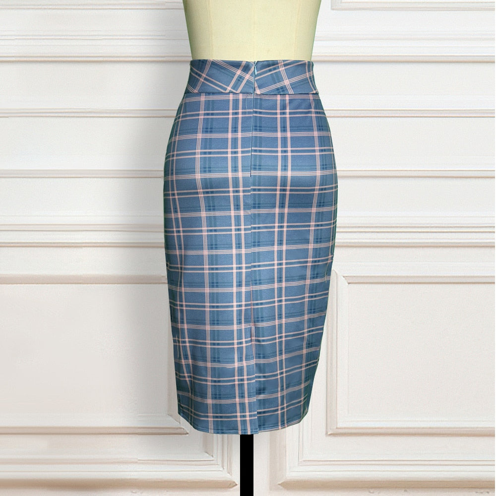 Falda midi de tubo con estampado de cuadros de algodón y poliéster