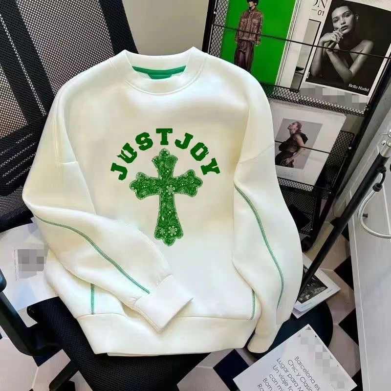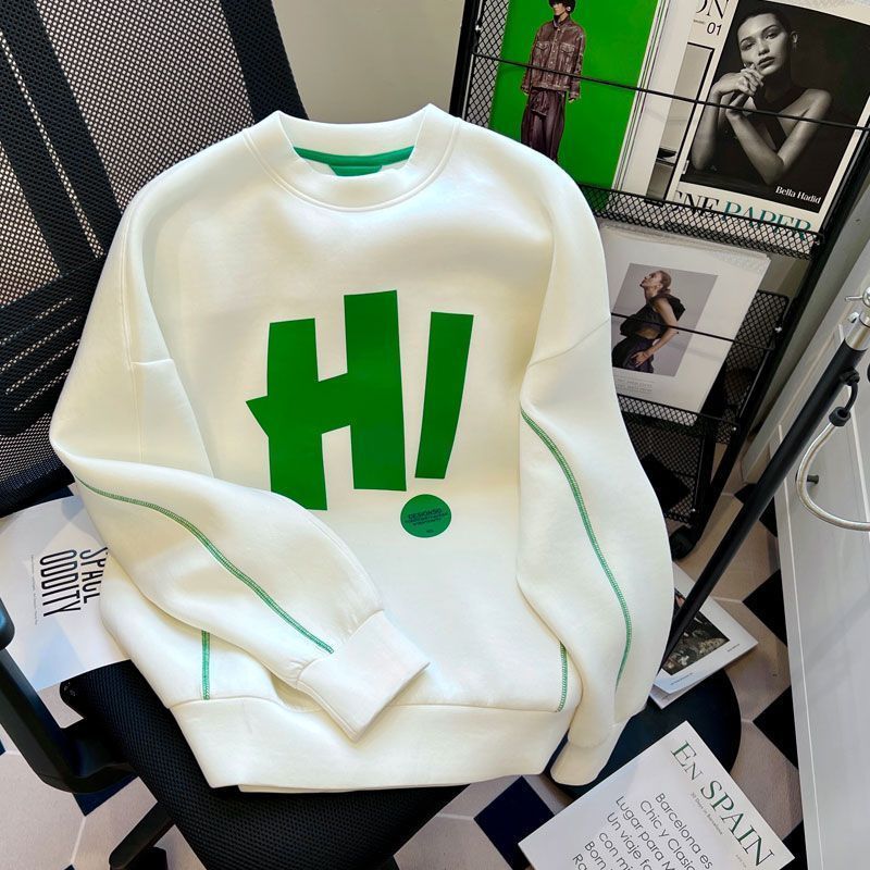Introducing our stylish and comfortable pullover cotton polyester sweater, perfect for any casual occasion. The front features a unique letter printing decoration. The ribbed cuffs and hem ensure a snug fit, while the classic crew neck design provides a timeless look. Available in a variety of sizes and colors to fit your personal style. Upgrade your wardrobe with this must-have sweater today!