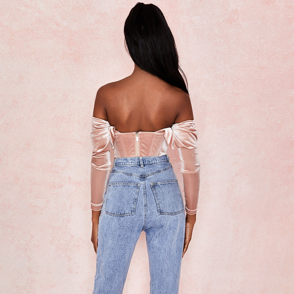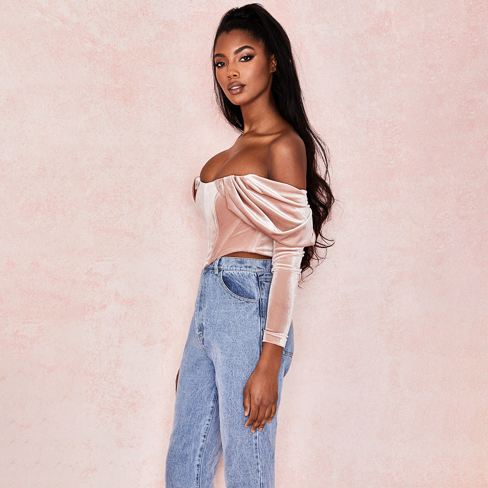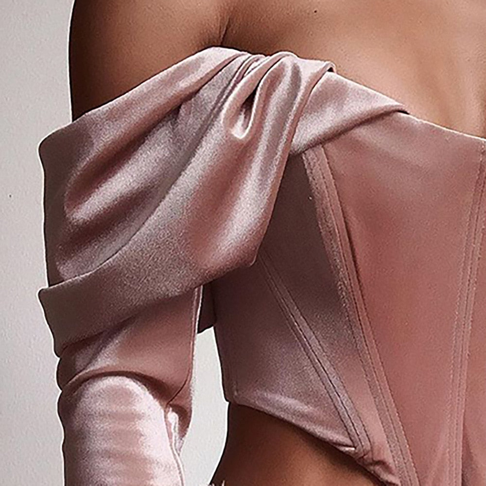 <transcy>Tops elegantes de color rosa con pliegues y mangas abullonadas para mujer</transcy>
