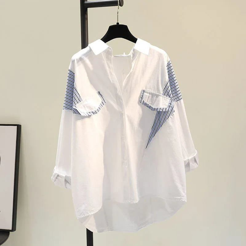 A fashionable statement of style, this shirt is crafted from high-quality cotton spliced fabric and patchwork. Beautifully designed and comfortable, this shirt is perfect for a casual day out.