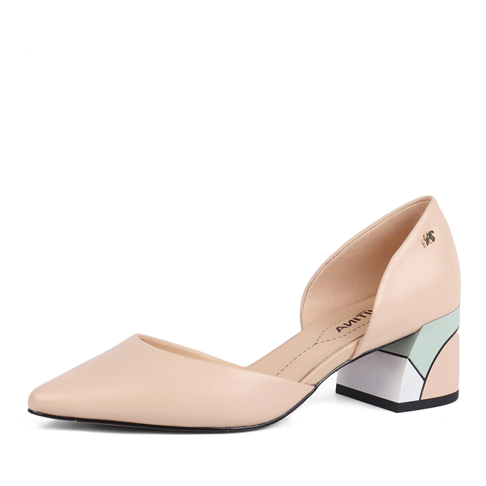 Sheepskin Genuine Leather Comfortable Square Heels Pump Shoes